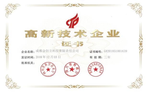 2015年10月被四川省授予“國家高新技術企業”